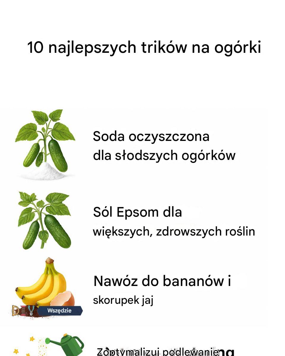 Ta metoda działa najlepiej, gdy jest stosowana na początku sezonu wegetacyjnego, ponieważ pozwala ogórkom rozwinąć słodszy smak w miarę dojrzewania. Pamiętaj, aby nie stosować jej w nadmiarze, ponieważ zbyt duża ilość sody oczyszczonej może zaszkodzić roślinom, czyniąc glebę zbyt zasadową.