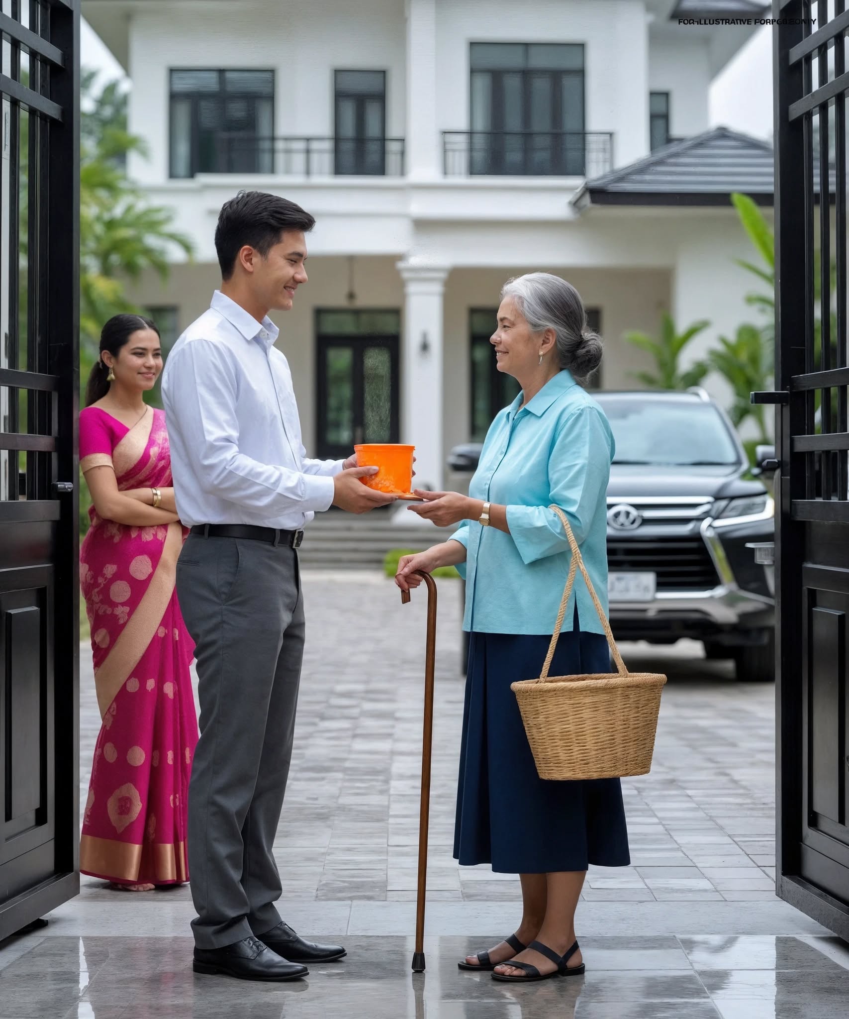 Zamiast jej pomóc, syn wręczył jej paczkę makaronu instant, po czym grzecznie odprowadził ją do drzwi.