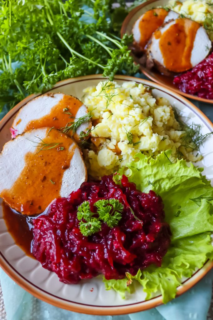 Schab w sosie ciemnym z buraczkamiZesmakuj ze mną pysznego, domowego obiadu.To smak jesieni. Soczyste mięso, a do tego buraczki i ziemniaki z koperkiem.Przepis znajdziesz poniżejSkładniki na schab (obiad dla 5