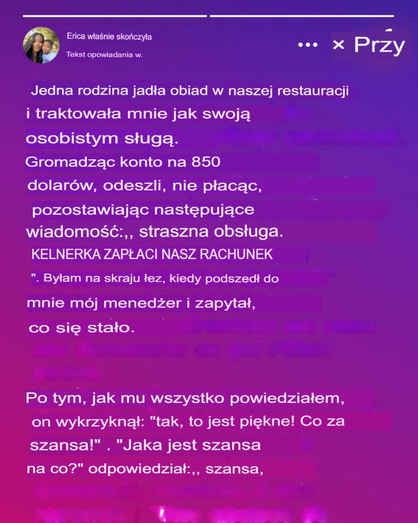 Kiedy rodzina nie zapłaciła rachunku w restauracji w wysokości 850 dolarów, byłem załamany. Ale dzięki sprytnemu planowi mojego dyrektora i niespodziewanemu sojusznikowi odwróciliśmy sytuację w sposób, którego się nie spodziewali.