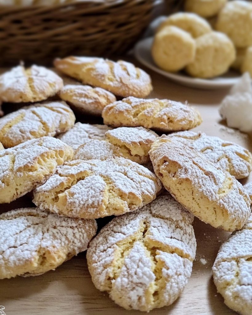 Miękkie Ciasteczka Migdałowe Składniki 🌰 250 g mąki migdałowej 🍚 150 g cukru 🥚 2 białka 🍋Otarta skórka z 1 cytryny 🥄 1 łyżeczka ekstraktu migdałowego (opcjonalnie) 🍚 Cukier puder