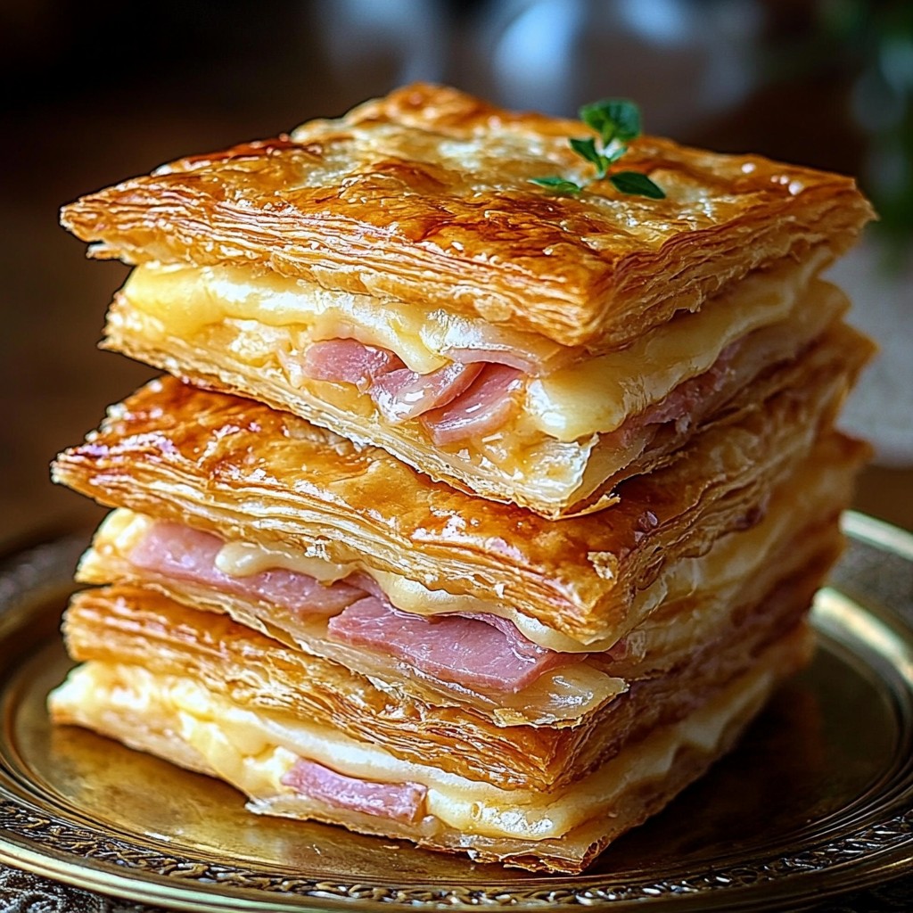 🔝 Szukasz **chrupiącej, serowej i pysznej przekąski**? **Te kwadraciki z ciasta francuskiego z szynką i serem** to idealna propozycja na każdą porę dnia! 🥄✨