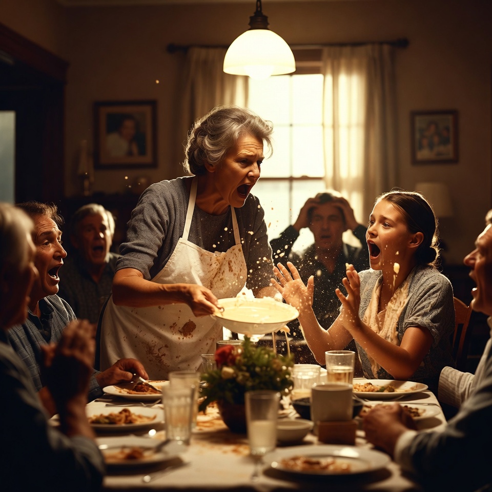 W jadalni panowała ciężka cisza, przerywana jedynie odgłosem zupy kapiącej ze stołu.
