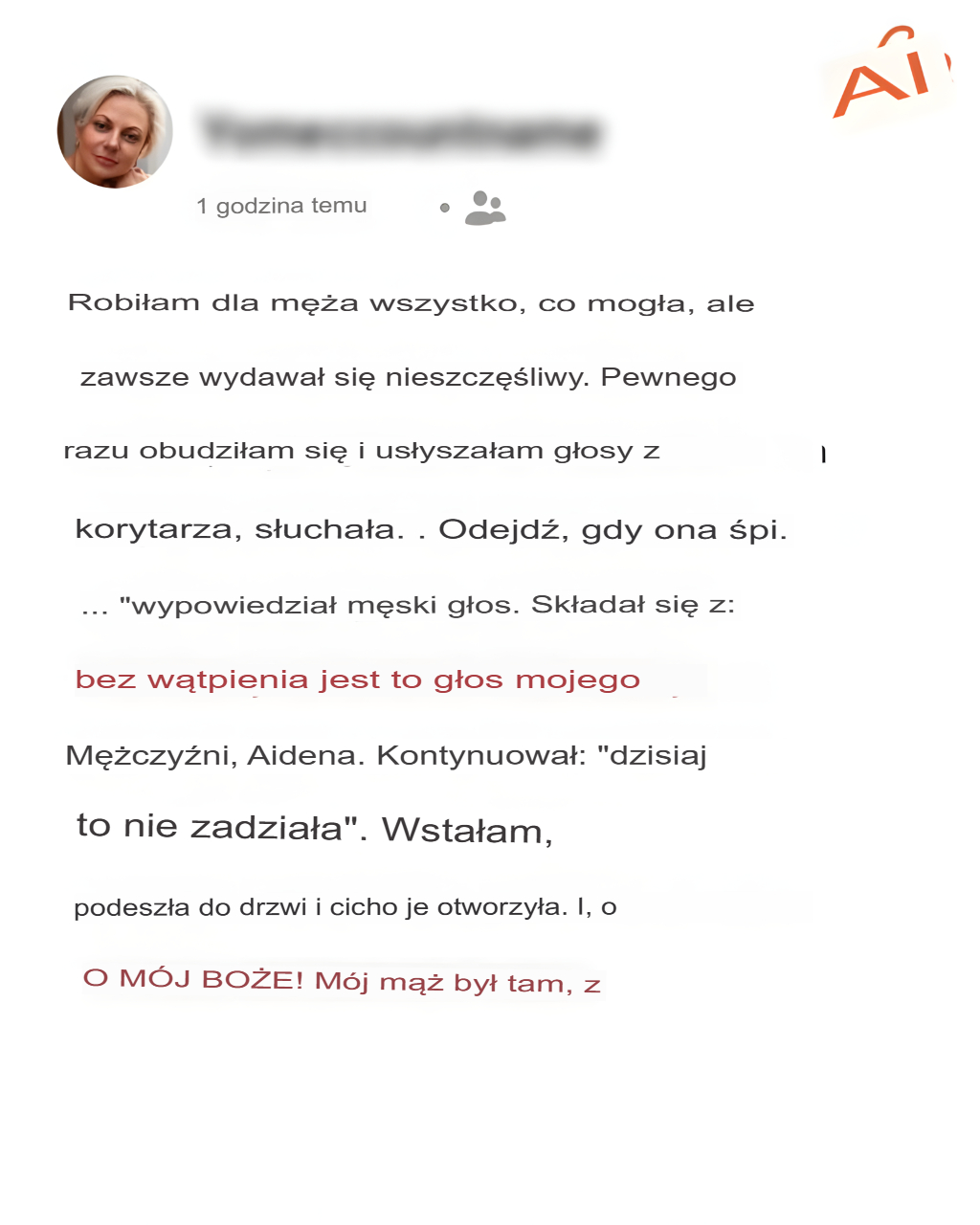 Robiłam wszystko, co mogłam dla męża, ale on zawsze wydawał się niezadowolony. Pewnego dnia obudziłam się i usłyszałam głos męża na korytarzu, któremu towarzyszył głos kobiety. „Jak on mógł to zrobić?” – pomyślałam. I to była ostatnia kropla, która przelała czarę goryczy.