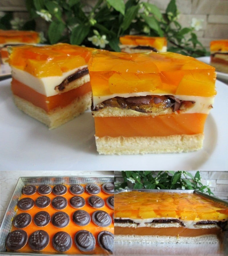 To ciasto “Kubuś Puchatek” to prawdziwa uczta dla podniebienia i oczu. Warstwy biszkoptu, aromatycznej masy z soku Kubuś, lekkiego jogurtowego kremu, chrupiących biszkoptów i soczystych brzoskwiń zatopionych w galaretce tworzą niezapomnianą kompozycję smaków i tekstur. Idealne na urodziny, rodzinne spotkanie czy po prostu jako słodka niespodzianka dla bliskich.