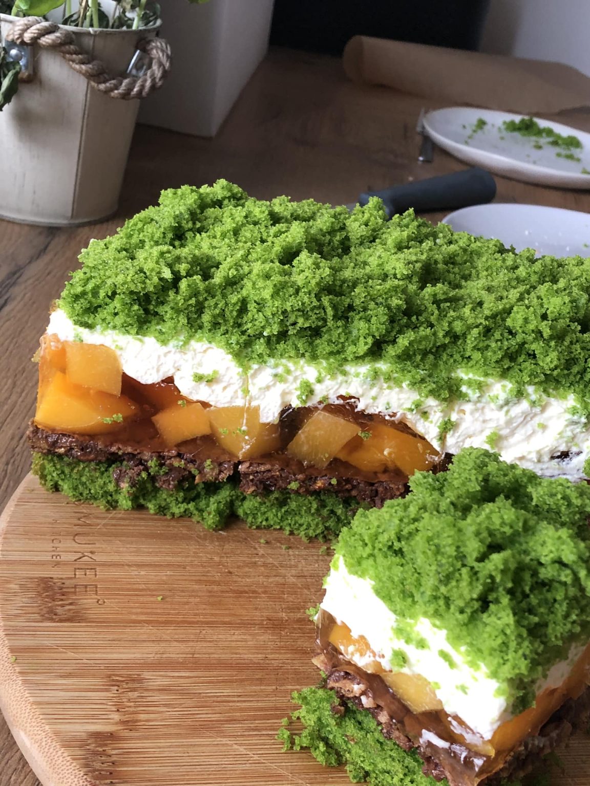 Wyjątkowe ciasto łączące delikatny szpinakowy biszkopt, orzeźwiające brzoskwinie i kremową warstwę mascarpone. Idealny deser na każdą okazję – pięknie wygląda i smakuje jeszcze lepiej!