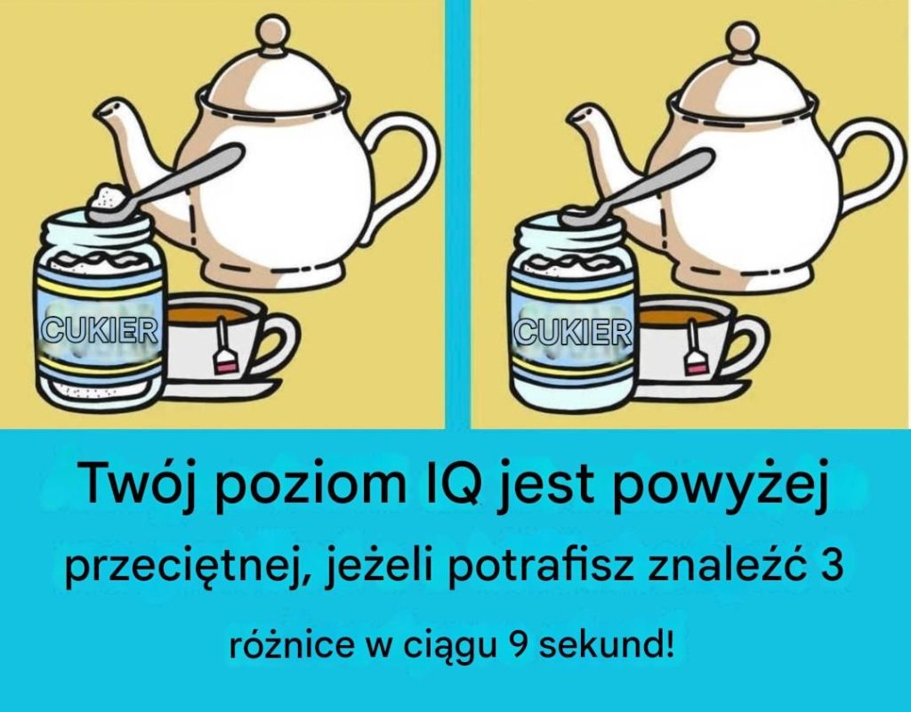 Wyobraź sobie spokojną chwilę przy herbacie – elegancki czajniczek, starannie wykonana filiżanka i błyszczący cukierniczka, wszystko perfekcyjnie ustawione niczym na obrazie martwej natury. Poniżej widzisz dwa niemal identyczne zdjęcia tej sceny, ale… nie daj się zwieść! Istnieją między nimi trzy drobne, lecz zauważalne różnice.