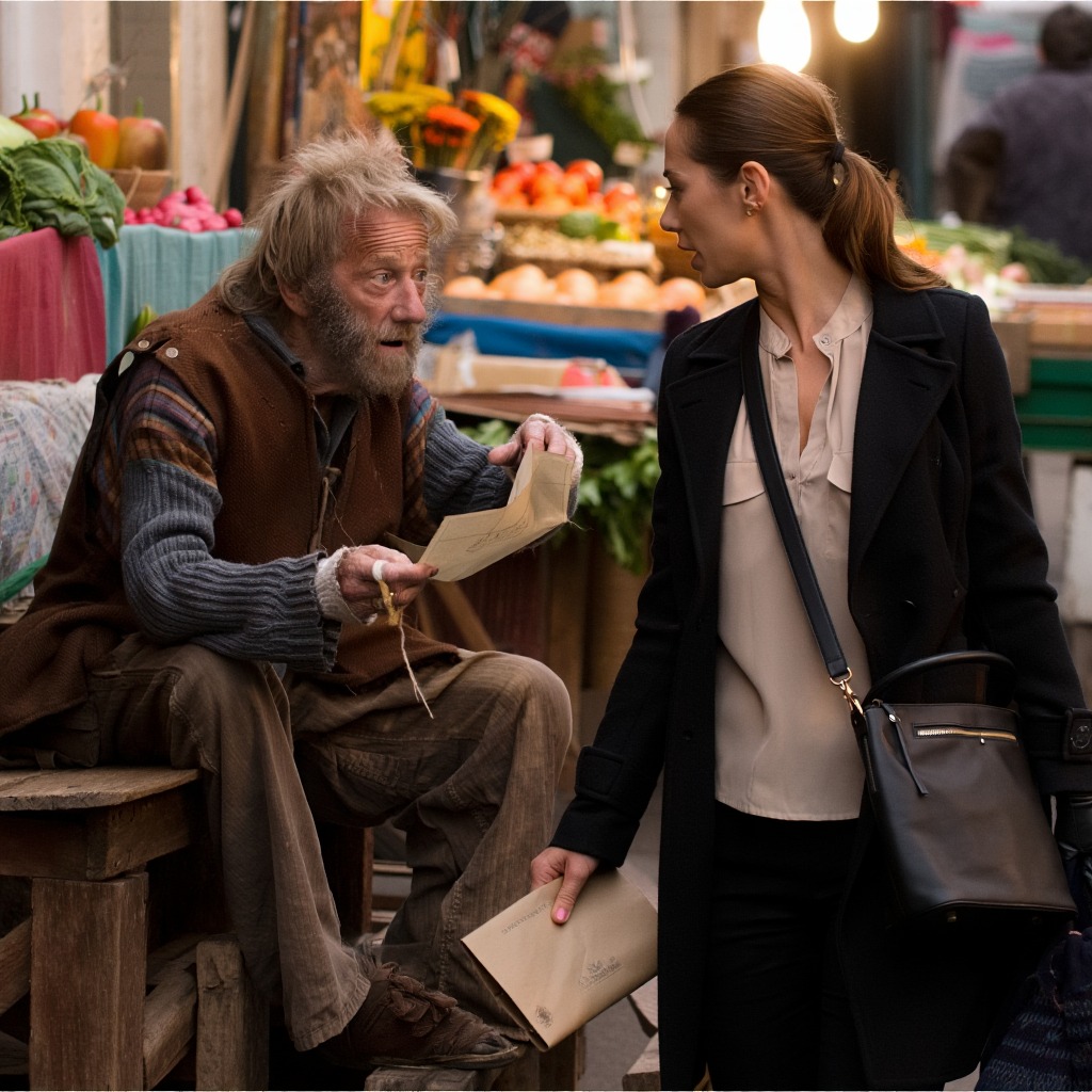 Miliarder Calvin Reese udawał włóczęgę i krążył po targu, obserwując, jak Lila (dziewczyna jego syna) go traktuje. Przez dwa tygodnie Lila nie dawała mu pieniędzy ani jedzenia – ale za każdym razem zostawiała małą kopertę pod ławką. Calvin pomyślał, że „gra” i postanowił ją zdemaskować. Kiedy otworzył kopertę, zbladł:…