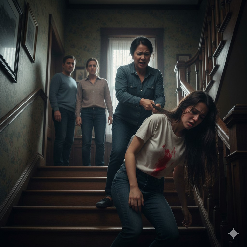 Harper odezwała się pierwsza, jej głos natychmiast złagodniał, drżąc od udawanych łez. „Oblała mnie sokiem, mamo. A kiedy się z nią skonfrontowałam, zaatakowała mnie”.