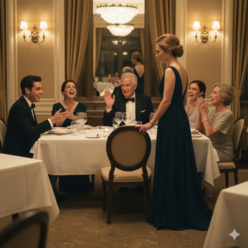 „Witamy, rodzino Sterlingów” – Maître d’hôtel skłonił się uprzejmie. „Przygotowaliśmy dla was najbardziej prywatny okrągły stół na drugim piętrze, z widokiem na ogród”.