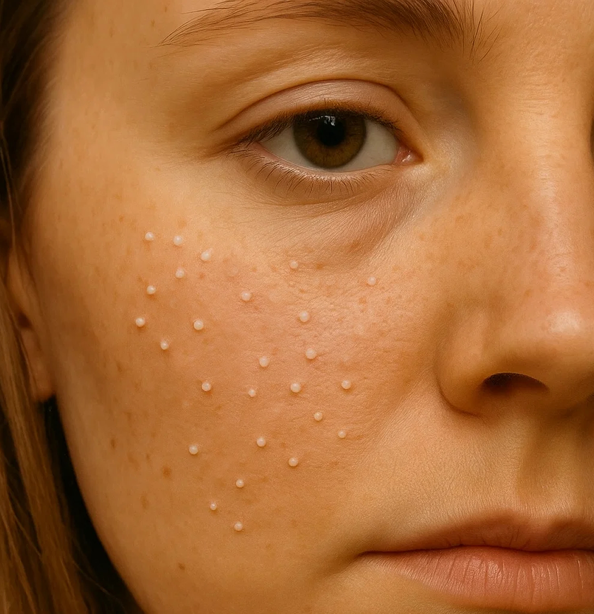 Milia to białe grudki, które tworzą się na skórze, zwłaszcza pod oczami. Są to po prostu małe cząsteczki tłuszczu, które osadzają się w różnych warstwach skóry wraz z martwymi komórkami .