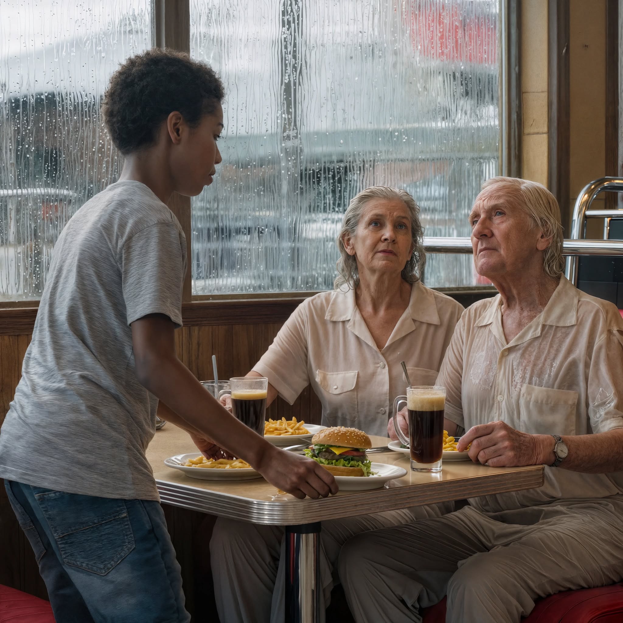 Listopadowy deszcz nie pada tu po prostu; wręcz uderza. Dziś wieczorem wali w szyby restauracji Murphy’s Diner, zamieniając parking w pole bitwy kałuż i ulew. Darius zajmuje ostatni stolik wieczornego serwisu, a jego żołądek burczy z niecierpliwości. Od trzech dni oszczędza każdy grosz na tę chwilę. Żadnych przekąsek po szkole, żadnych napojów gazowanych w porze lunchu, spaceruje zamiast jeździć autobusem – wszystko dla prostej przyjemności zjedzenia posiłku, siedzenia jak klient zamiast pracy w ukryciu. Burger i frytki czekające na niego przy ladzie to coś więcej niż tylko jedzenie. To symbol wyboru. Po raz pierwszy Darius sam decyduje, co zje, zamiast zadowolić się najtańszą opcją.