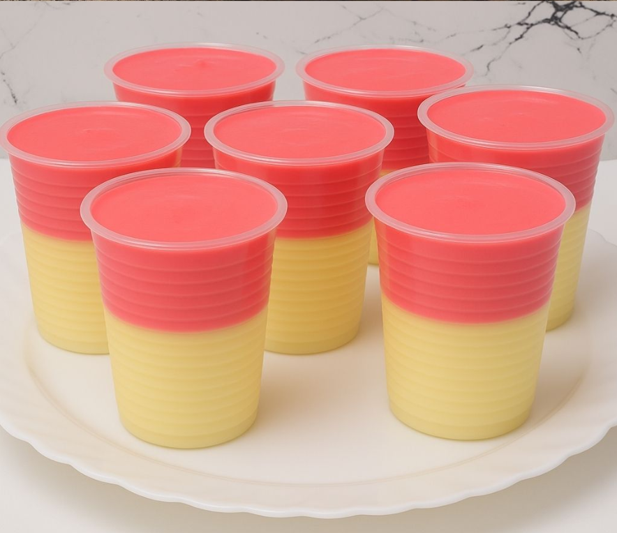 Przelej mieszankę do jednorazowych kubków (250 ml / 8,5 uncji), napełniając je do połowy, lub, jeśli wolisz, użyj szklanek deserowych.