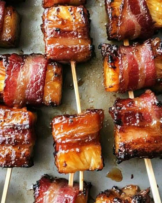 Ten pyszny przepis doskonale komponuje się z prostą zieloną sałatką doprawioną pikantnym winegretem, który równoważy słodkie i pikantne smaki. Aby uzyskać treściwy posiłek, podawaj go z kremowym puree ziemniaczanym lub ciepłą zapiekanką kukurydzianą. I nie zapomnij o domowej surówce coleslaw, aby uzyskać dodatkową chrupkość i odrobinę słodyczy — sprawi, że Twoje kubki smakowe zaśpiewają. Pieczony ananas owinięty boczkiem