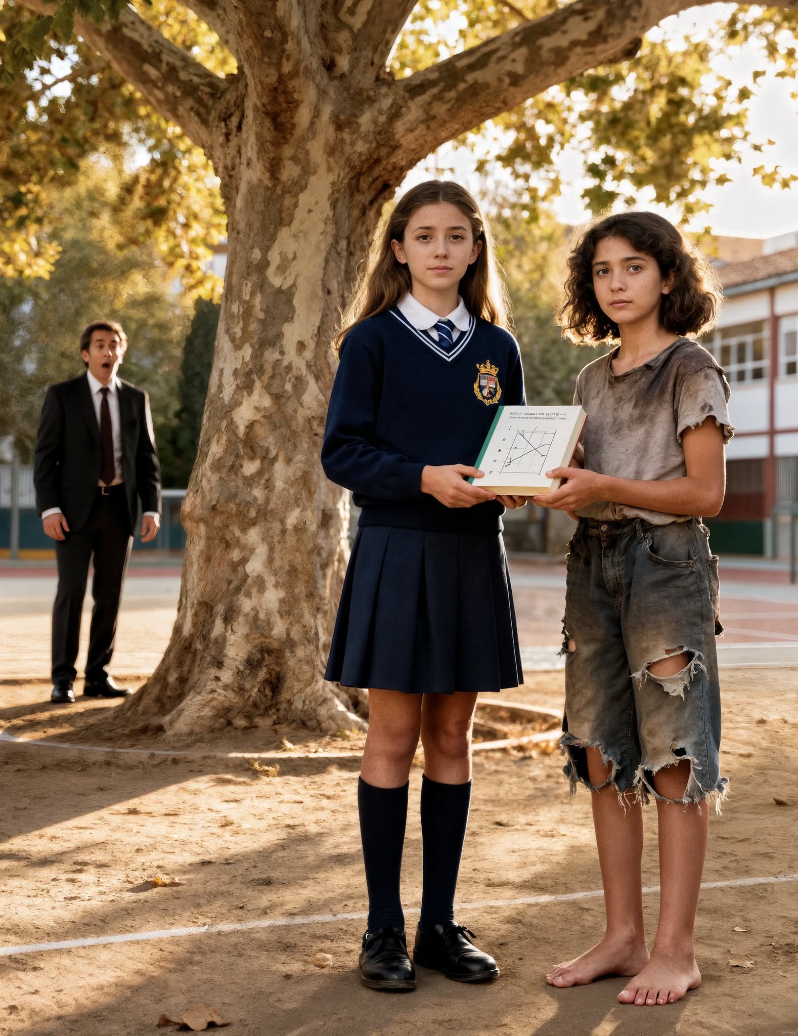Razem weszły do szkoły. Ten sam mundurek, ta sama torba, ten sam uśmiech. Rozległy się szepty: czyż nie była ulicznikową dziewczyną? Tak. Ale tego dnia szła obok córki założyciela. Koniec z ukrywaniem się. Przekroczyła próg jako uczennica.